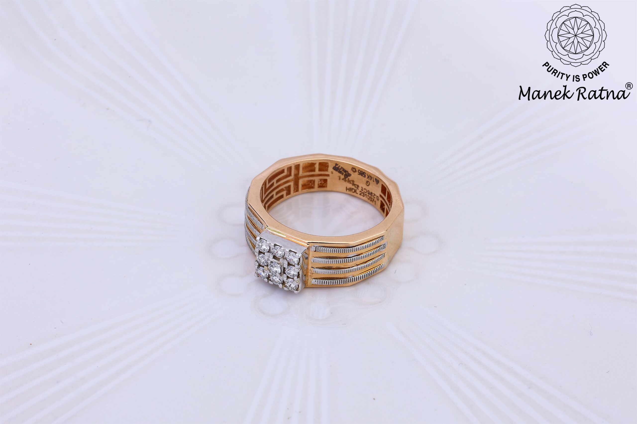Exclusive two Toned Male Ring containing Certified natural Diamond and Hallmarked Rose Gold